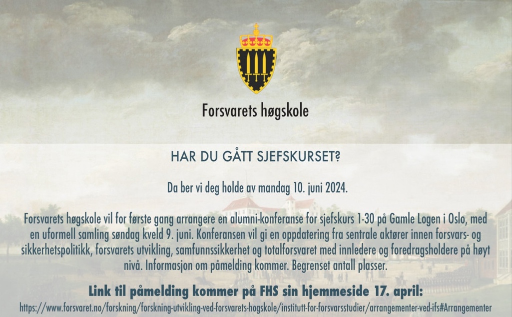 FHS alumni-konferanse 10. juni 2024. Se vedlagt. Det åpnes for påmelding 17. april på FHS sin hjemmeside